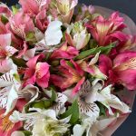 Атласная лента – 1 шт.декоративная упаковка – 1 шт.Альстромерия – 17 шт.