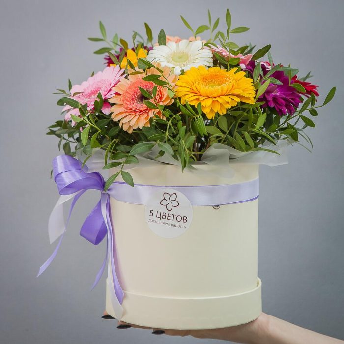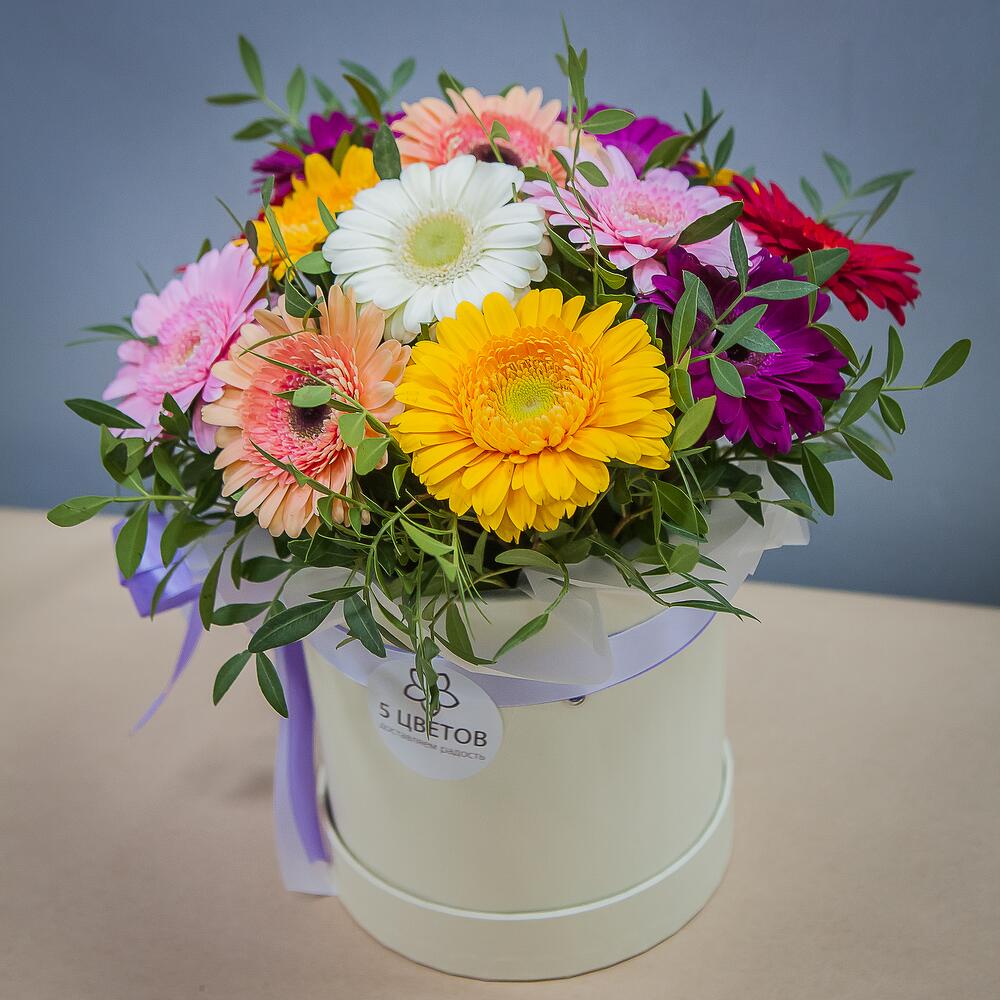 Букет из 15 гербер микс в шляпной коробке