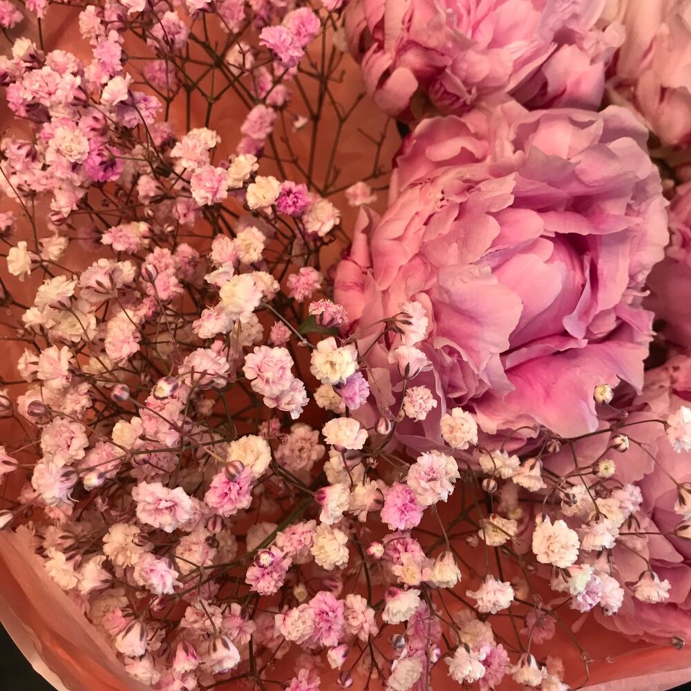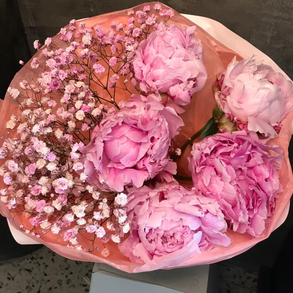 Авторский букет из пионов и гипсафилы