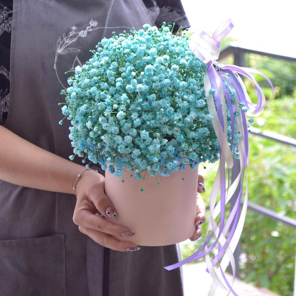 Букет гипсофилы цвета морской волны в коробке