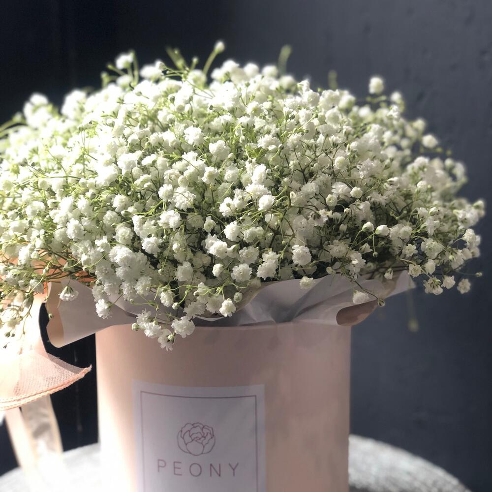 Гипсофила – 8 шт.Шляпная коробка – 1 шт.Оазис флористический – 1 шт.Лента атласная – 1 шт.