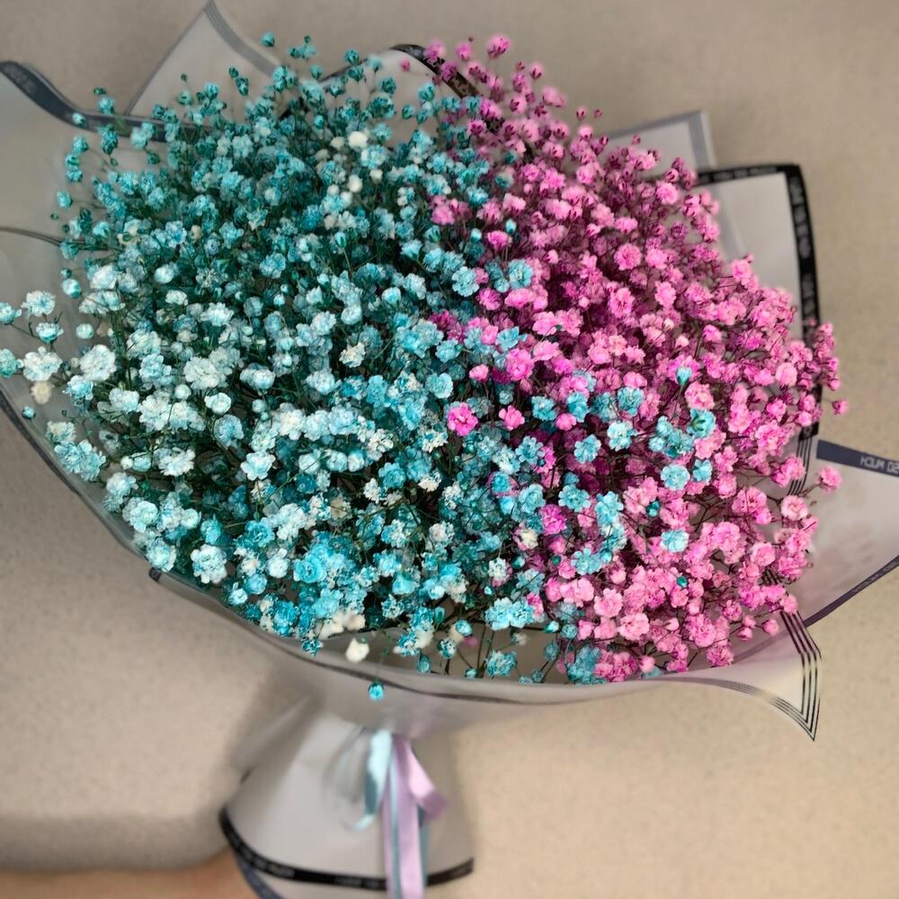 Гипсофила – 9 шт.Лента атласная – 1 шт.Упаковка дизайнерская – 1 шт.
