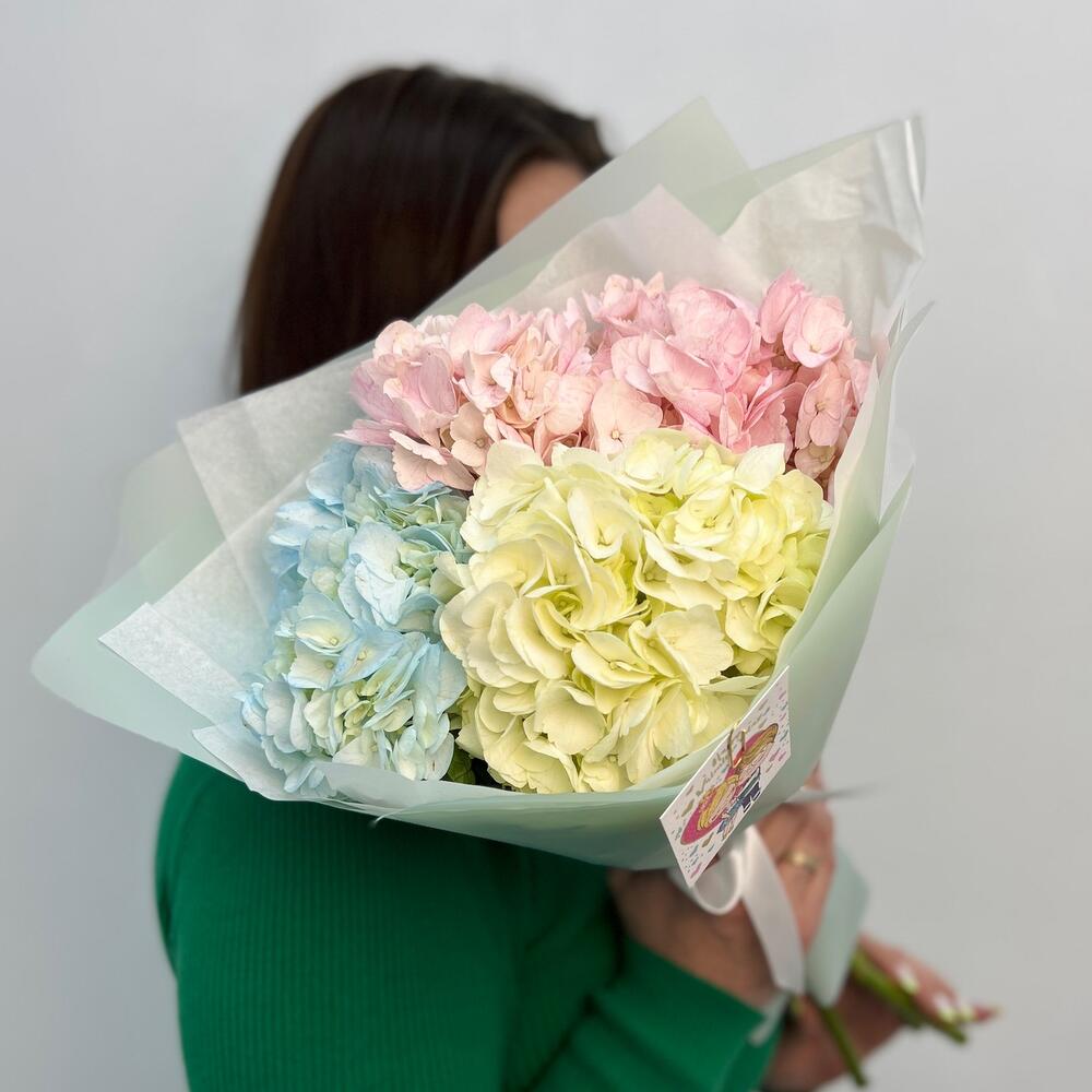 Гортензии в дизайнерской упаковке