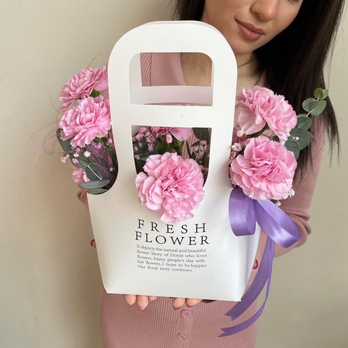 Розовые диантусы в стильном пакете