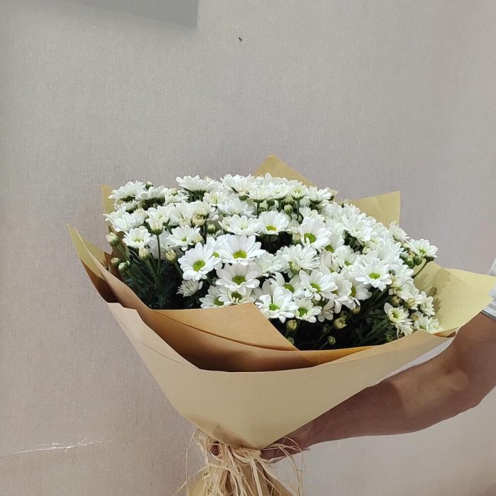15 белых кустовых хризантем