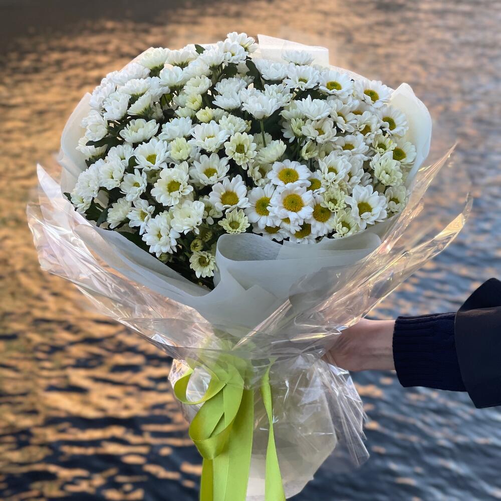 Букет из белой хризантемы "Раз-ромашка, даа- ромашка М»