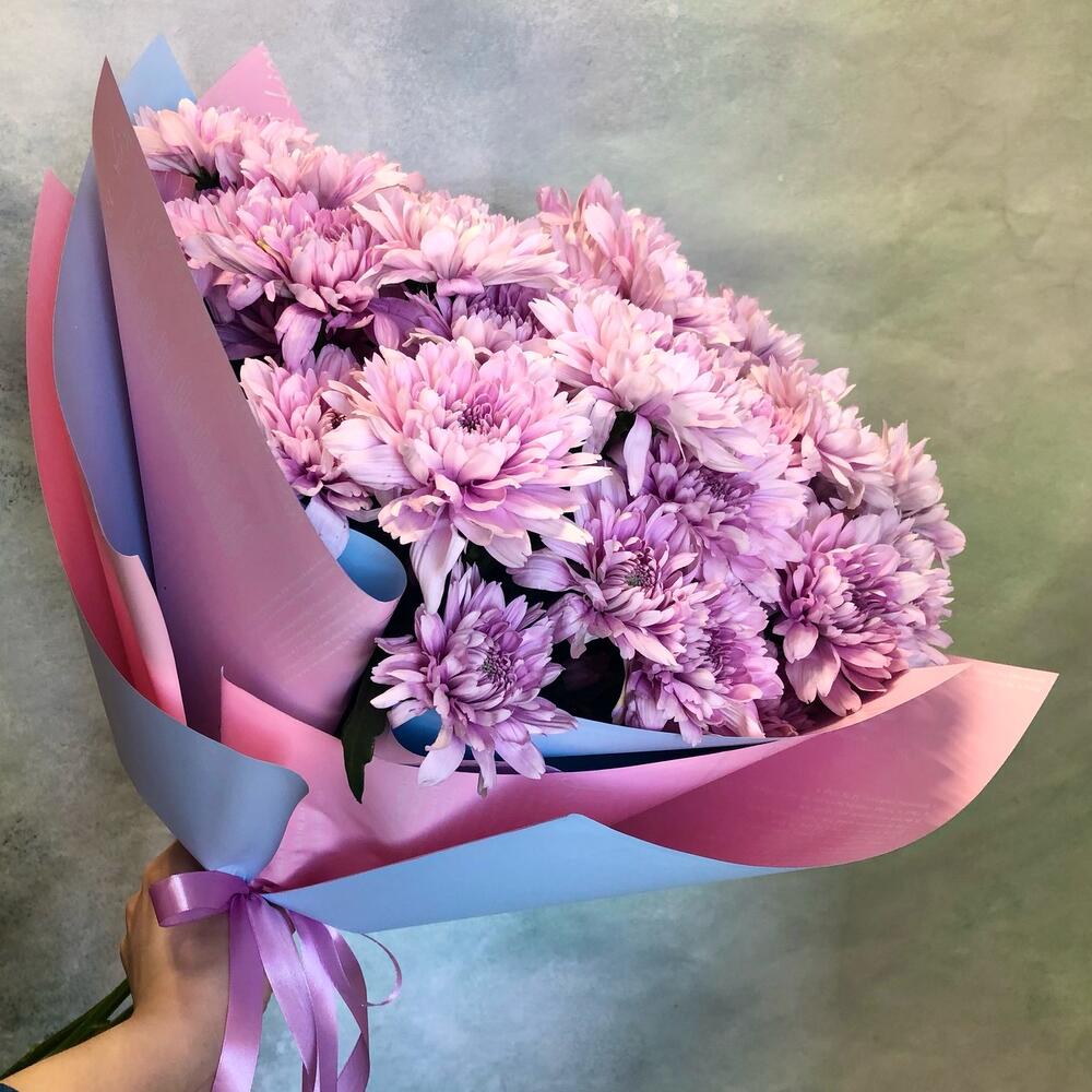 15 кустовых хризантем с зеленью