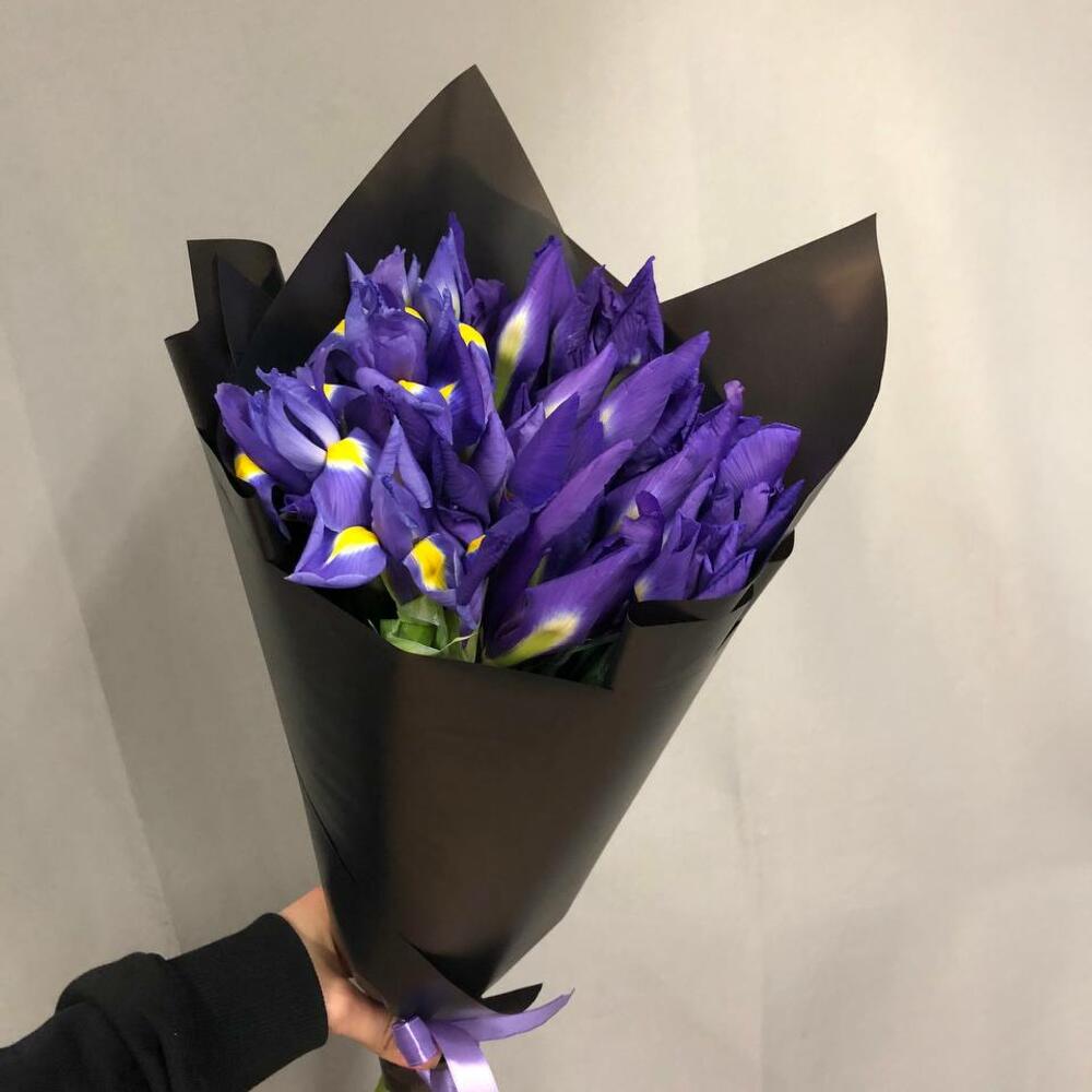Атласная лента – 1 шт.Ирис Blue Magic – 19 шт.Корейская пленка – 2 шт.