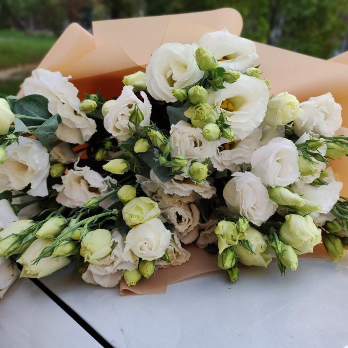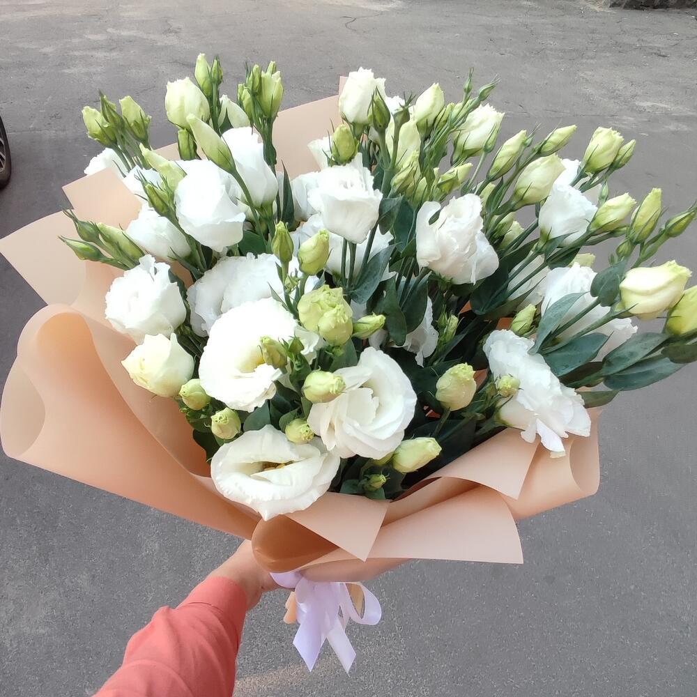 эустома белая – 9 шт. калька флористическая – 1 шт.
