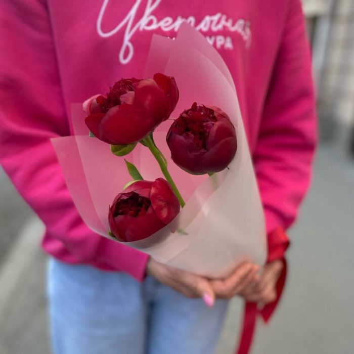 3 пиона бордового цвета
