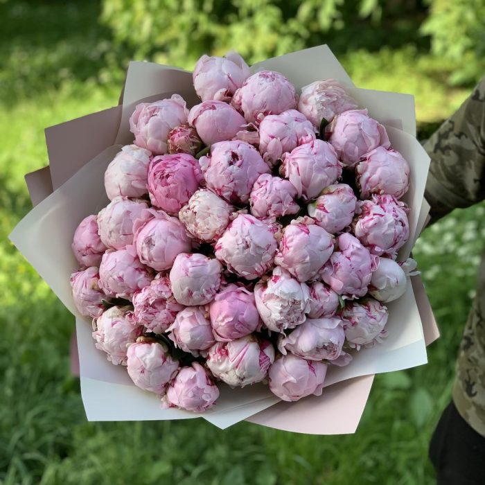 Лента атласная – 1 шт.Пион Сара Бернар – 39 шт.Упаковка дизайнерская – 4 шт.