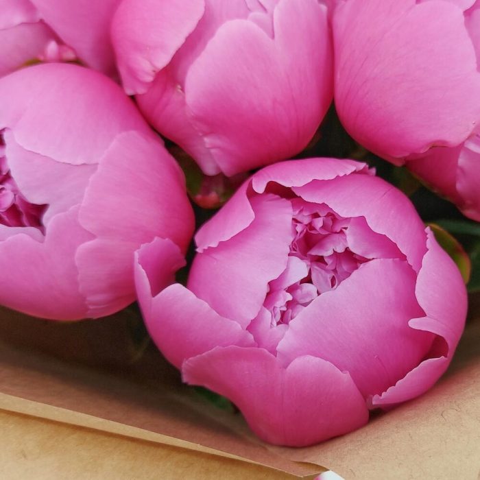 Пион – 9 шт.Лента атласная – 1 шт.Упаковка крафт – 3 шт.