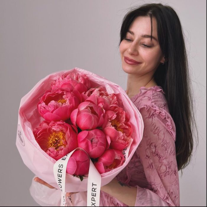 Букет из 9 пионов “CORAL CHARM”