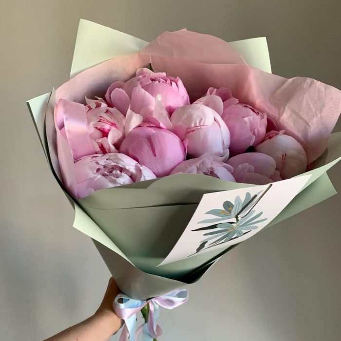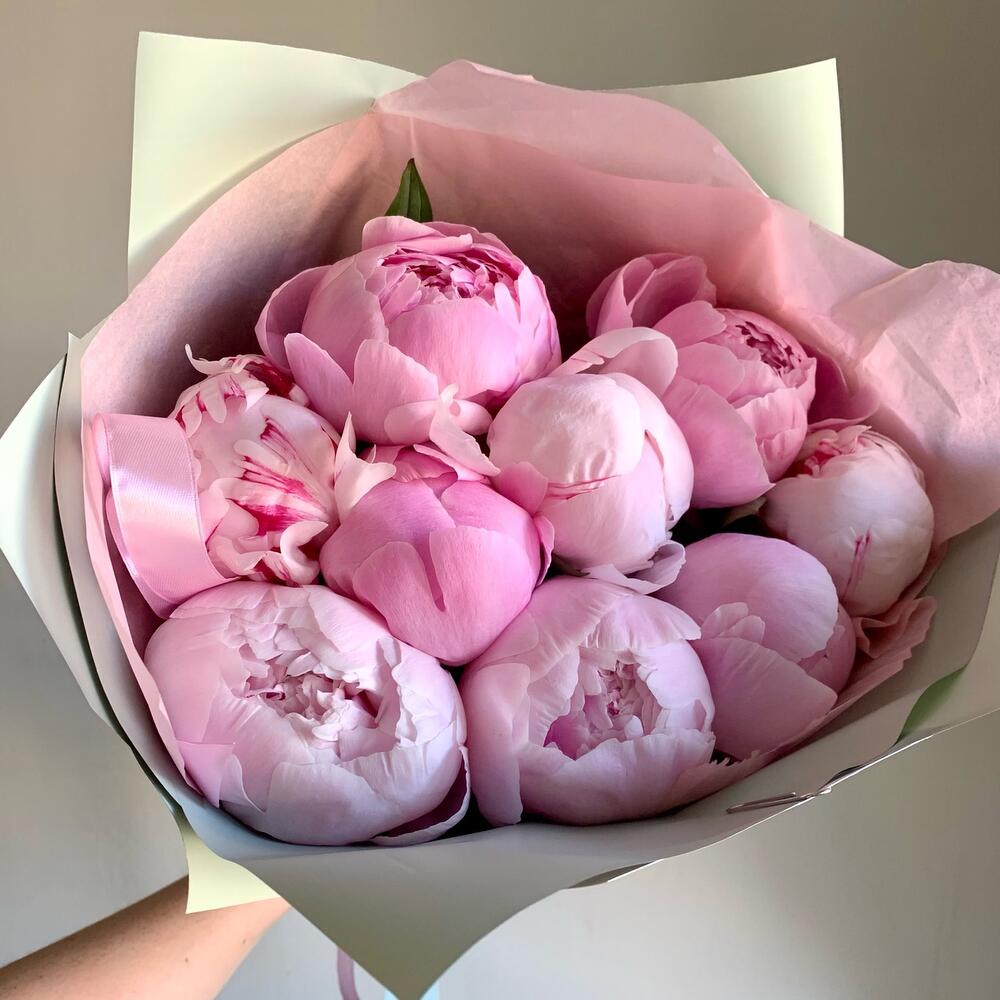 Букет из 9 розовых пионов
