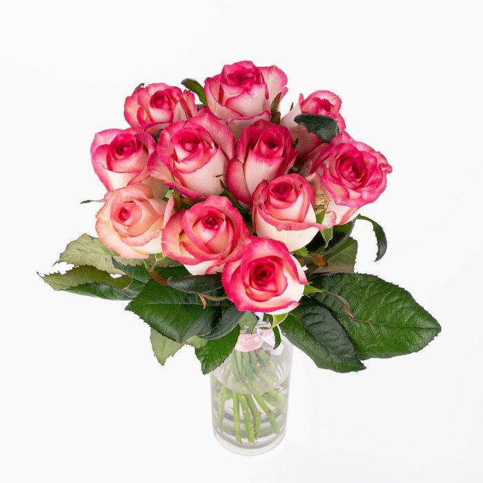 Небольшой букет из 11 бело-розовых роз Джумилия. Такой букет позволит Вам выразить свою симпатию и покорить сердце понравившейся девушки