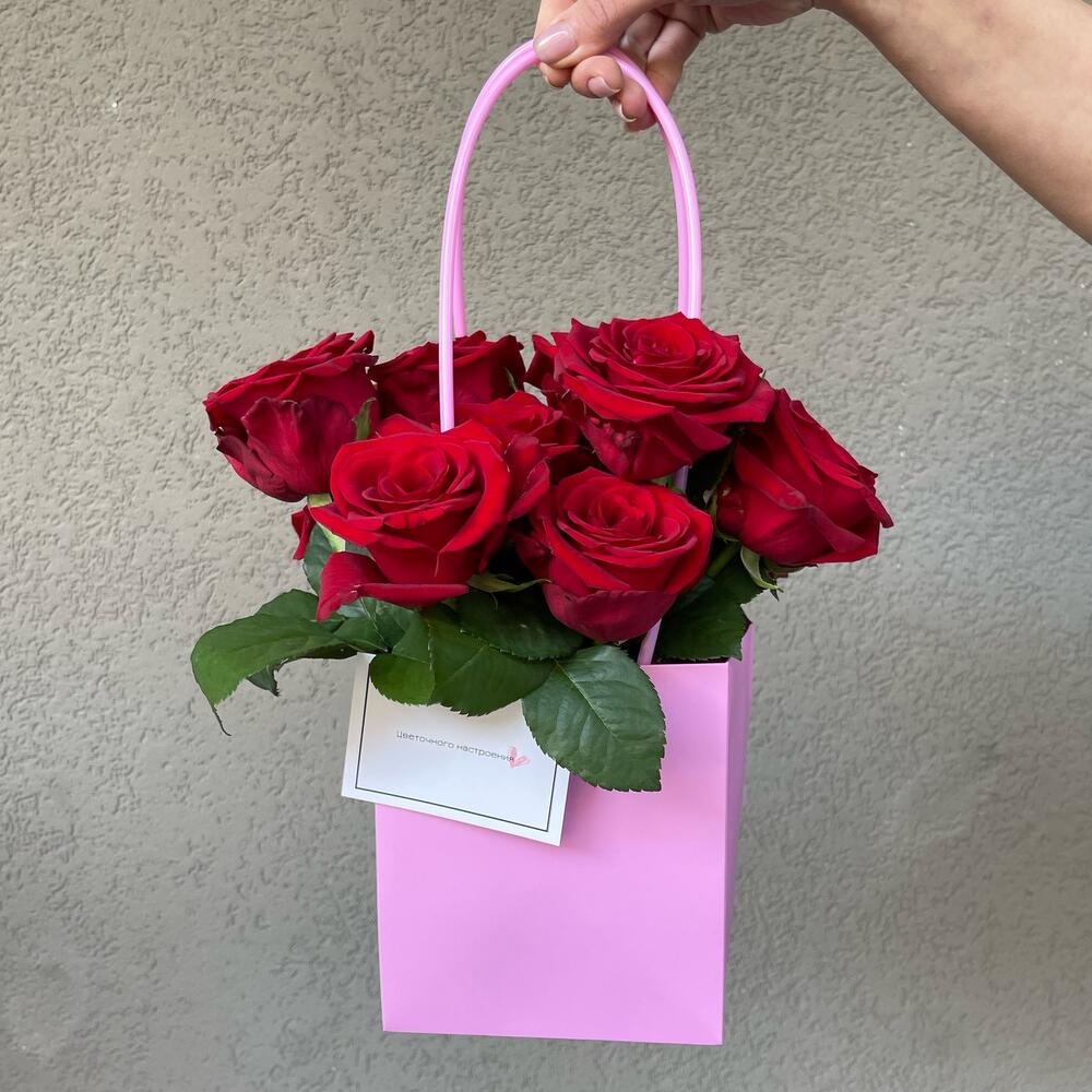 Роза красная – 13 шт.Оазис флористический – 1 шт.коробка пакет – 1 шт.