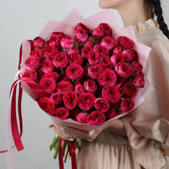 15 пионовидных кустовых роз монобукет