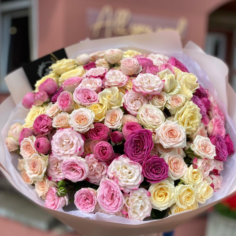 Кустовые розы, Пионовидные розы, Розы, Сухоцвет, Тюльпаны