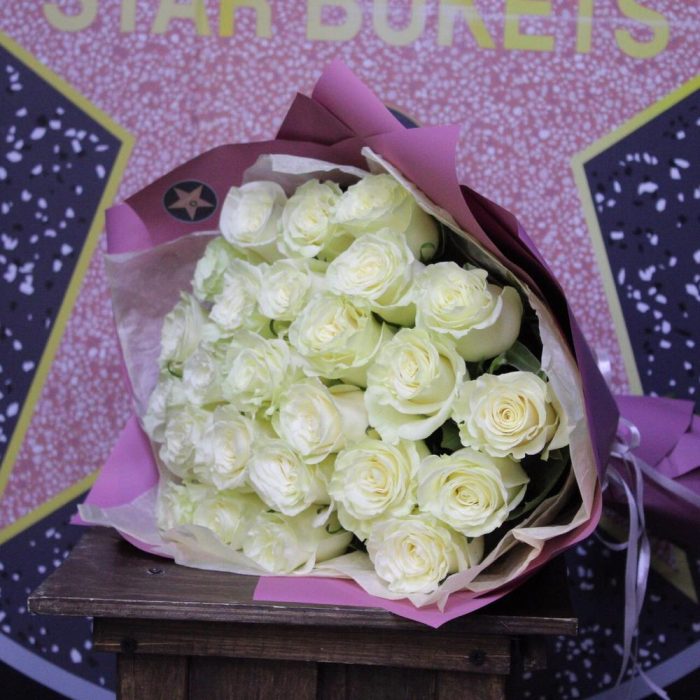 Роза Эквадор Мондиаль – 25 шт.Тишью – 2 шт.Пленка дизайнерская – 2 шт.Лента атласная – 1 шт.