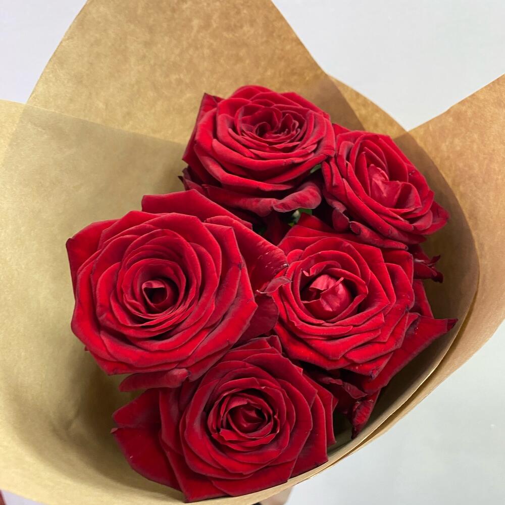 Роза красная – 5 шт.Крафт упаковка – 1 шт.Открыточка с вашими пожеланиями – 1 шт.