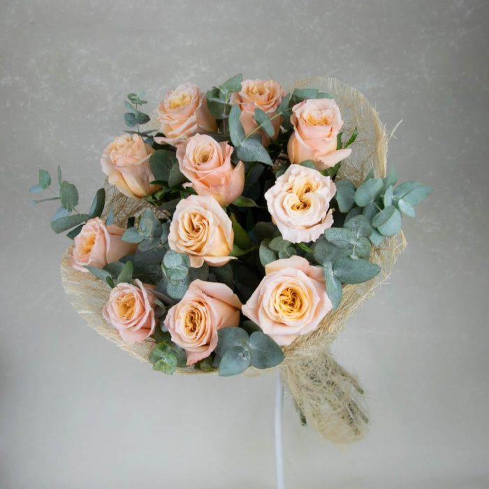 A particular shade of pink may vary, depending on the availability of seasonal flowers. Photo 11 roses. Bouquet size is approximately 50-55 cm Bouquet for those who love all natural. The bouquet is wrapped in natural Kraft in the same tones. All is simvoliziruet closeness to nature. The gift usually is applied to our card with a beautifully printed text of your message. To bouquets usually come with a recommendation for the care and explaining why. Upon delivery, the temperature in a car courier controlled by us depending on season.