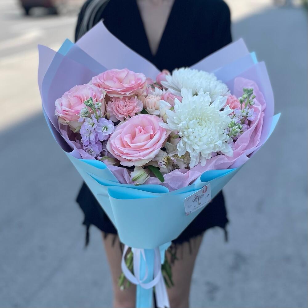 Категорий: Альстромерии, Гвоздики, Кустовые розы, Розы, Хризантемы