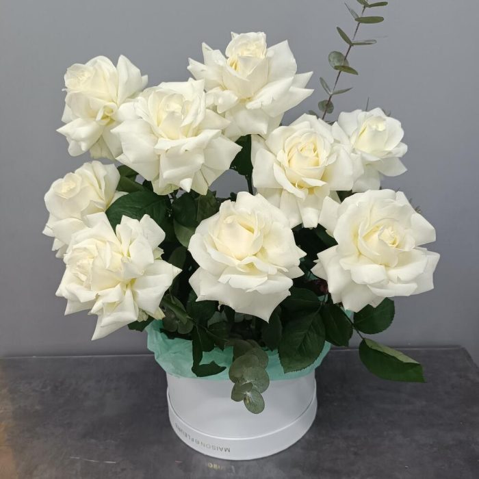 французские розы – 5 шт. Эвкалипт – 2 шт. открытка с вашими пожеланиями – 1 шт.