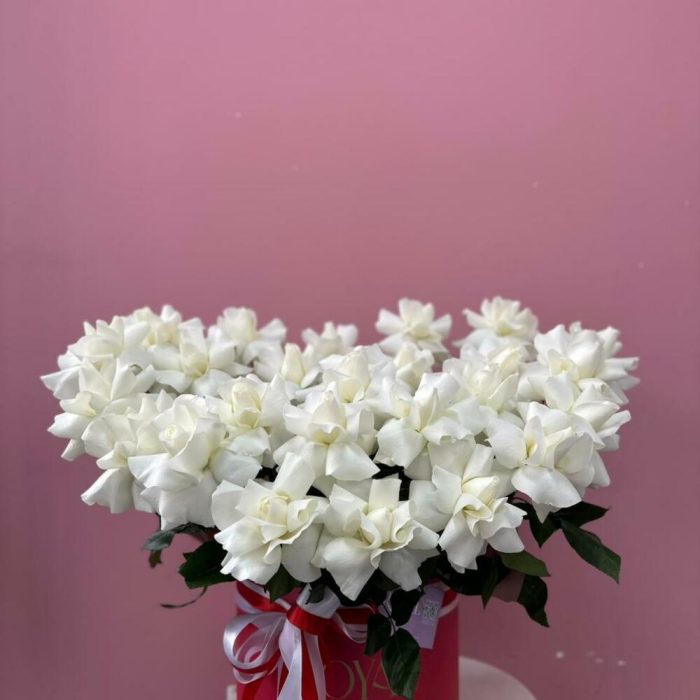 “Атлас☁️” – цветочная композиция с зефиром в деревянном ящике
