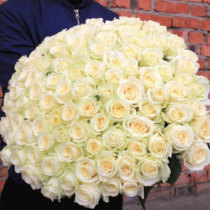 Роза белая – 101 шт.Лента атласная – 1 шт.