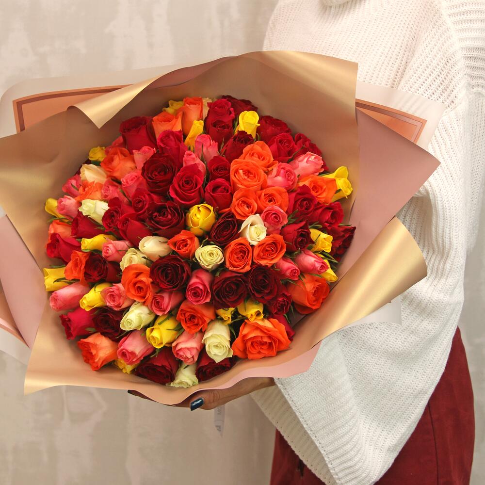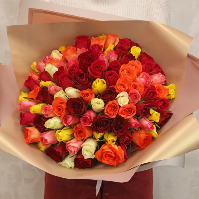 Букет из 101 розы микс 35-40 см (Кения) в упаковке