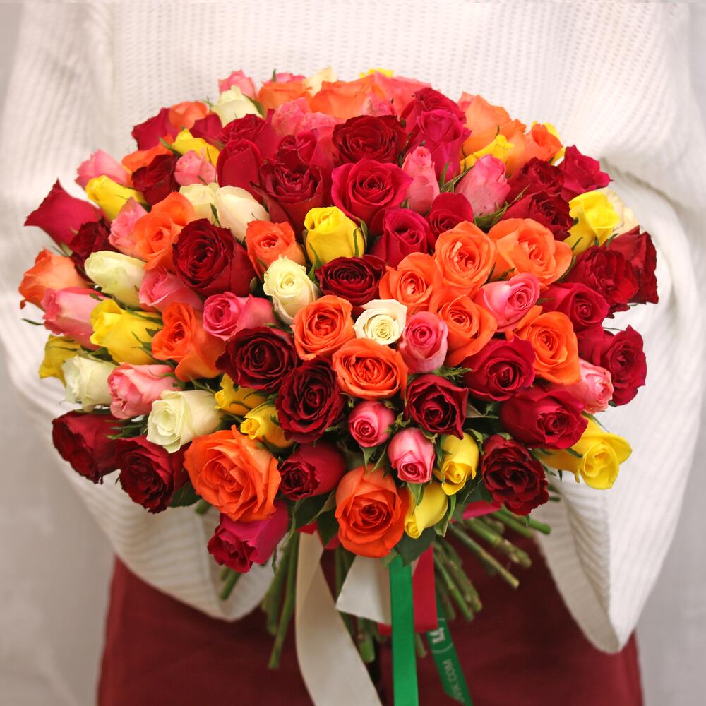 Букет из 101 розы яркий микс 35-40 см (Кения)