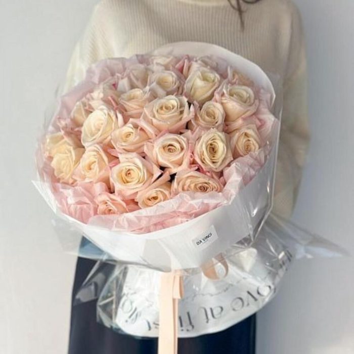 Букет из 25 голландских роз в оформлении – Выбрав букет от DaVinci Flowers Вы скрасите день обладательницы букета и подарите ей незабываемые эмоции.