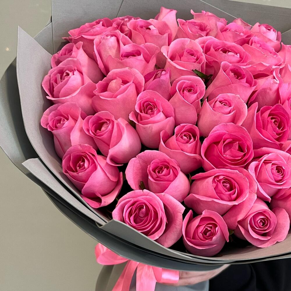 Букет из 45 розовых роз в упаковке