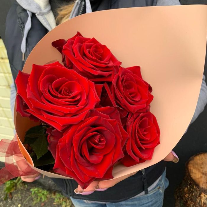 Роза – 5 шт.Упаковка – 1 шт.Лента – 1 шт.