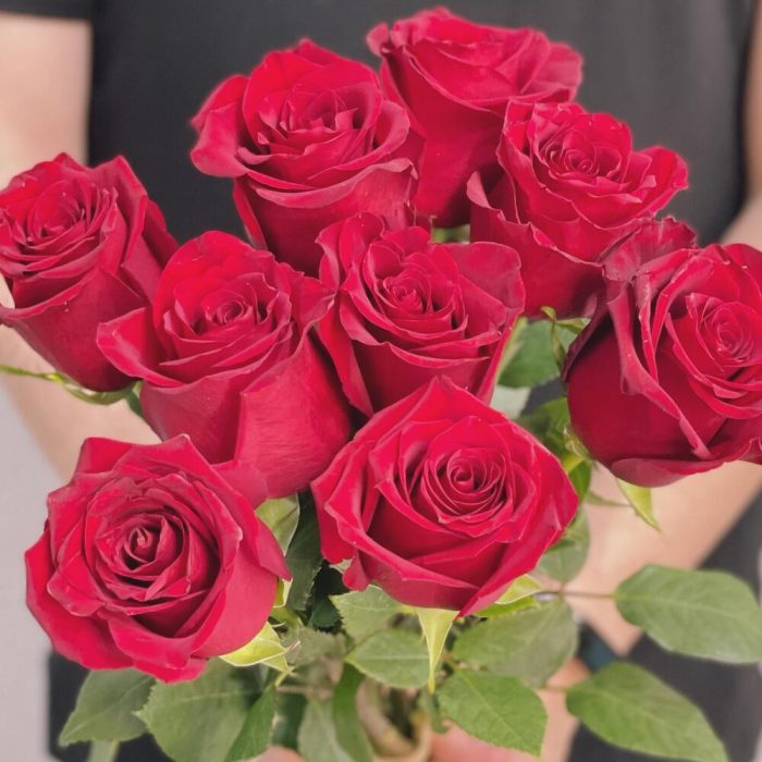 Лента атласная – 2 шт.Роза эквадор 50 см – 9 шт.