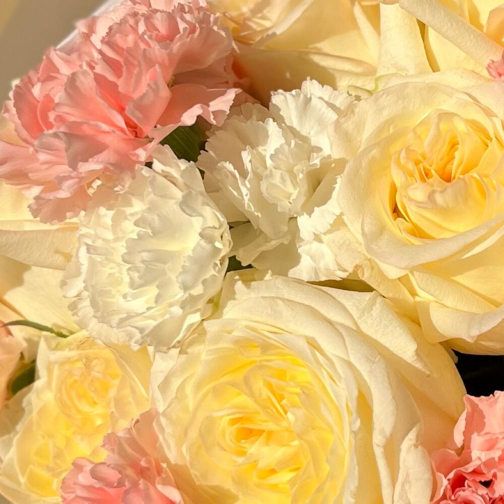 Гвоздика – 9 шт.Дизайнерская упаковка – 1 шт.роза “candlelight” – 8 шт.