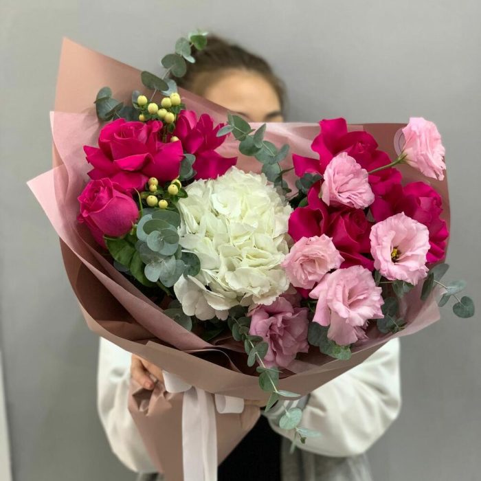 Кустовые розы, Лизиантусы, Пионы, Розы, Хризантемы