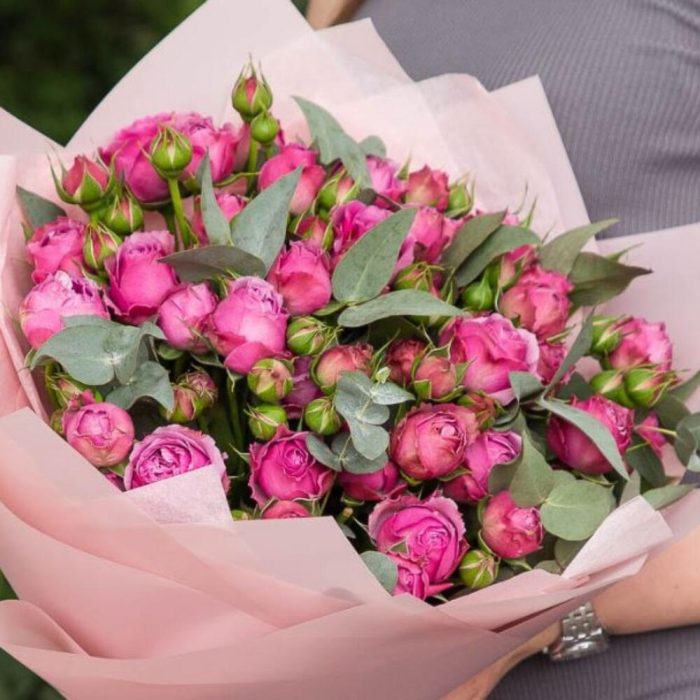 Эвкалипт – 5 шт. кустовые розы – 10 шт.