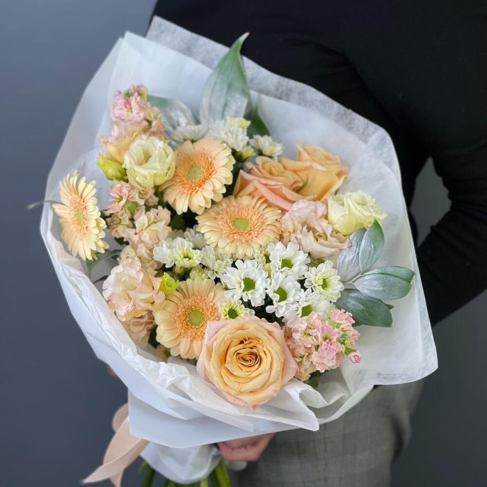 Букет с нежной маттиолой “Гоголь-моголь Абрикос”