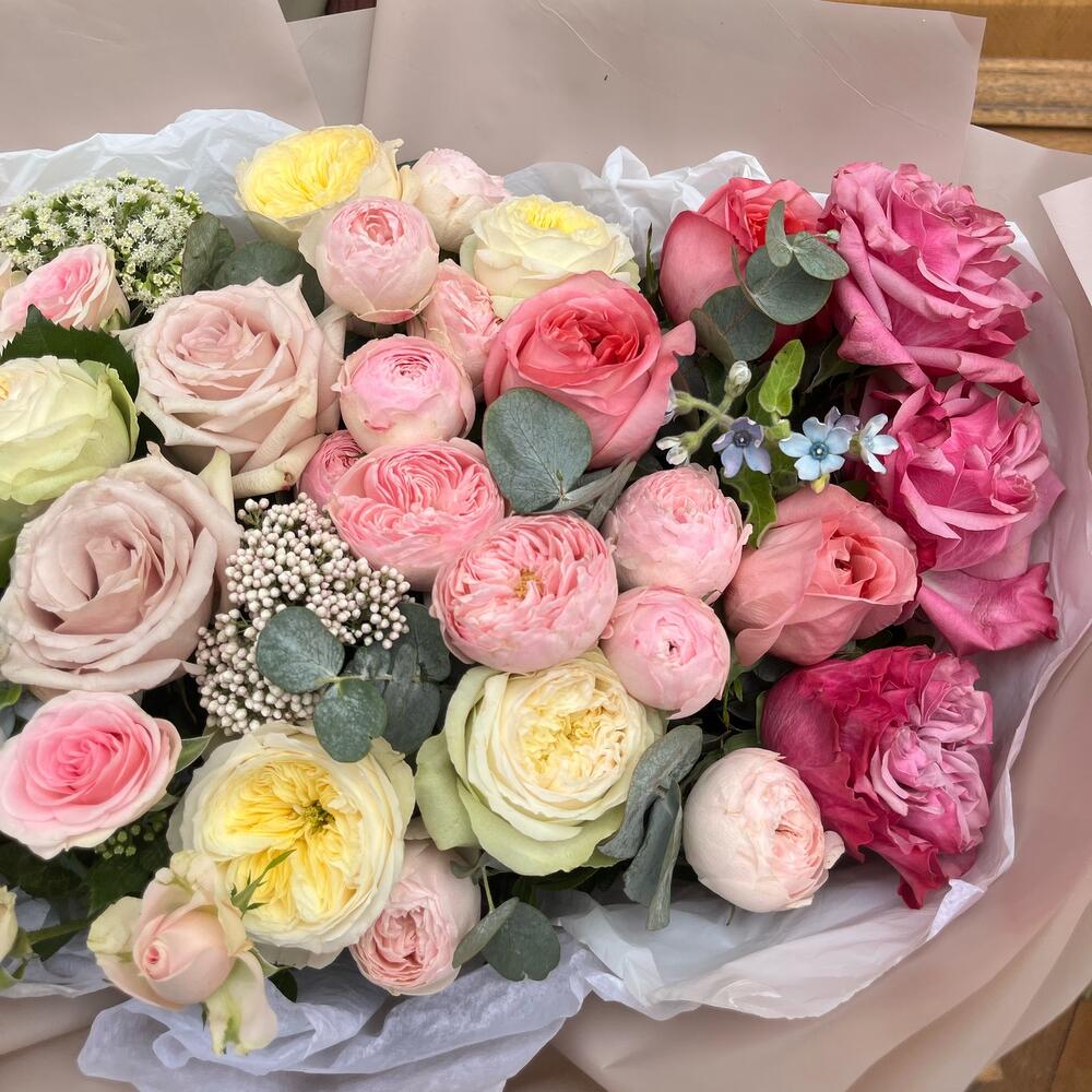 Кустовые розы, Лизиантусы, Пионы, Розы