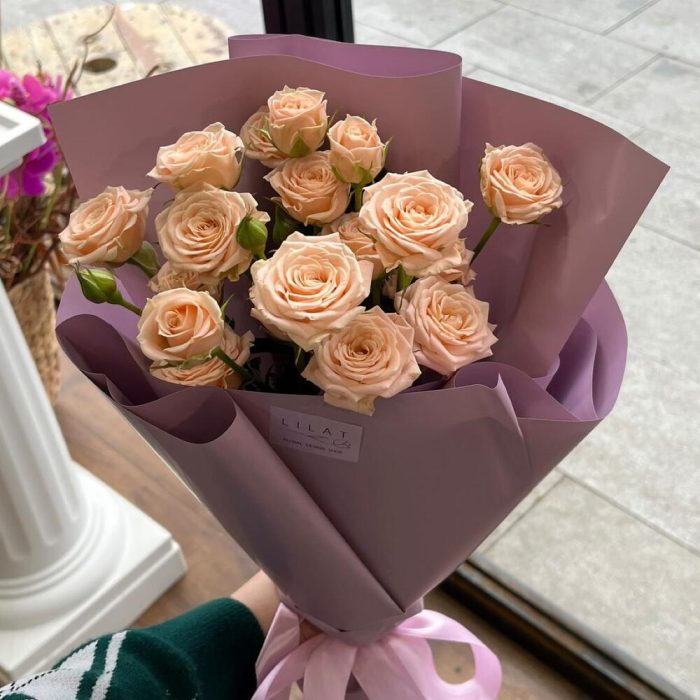Кремовая кустовая роза – 7 шт. Упаковка дизайнерская – 1 шт. Открыточка с вашими пожеланиями – 1 шт. инструкция по уходу за цветами – 1 шт.