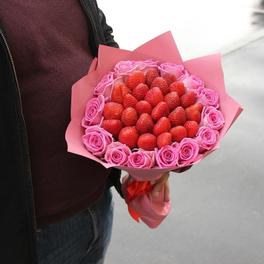 Клубника с розовыми розами