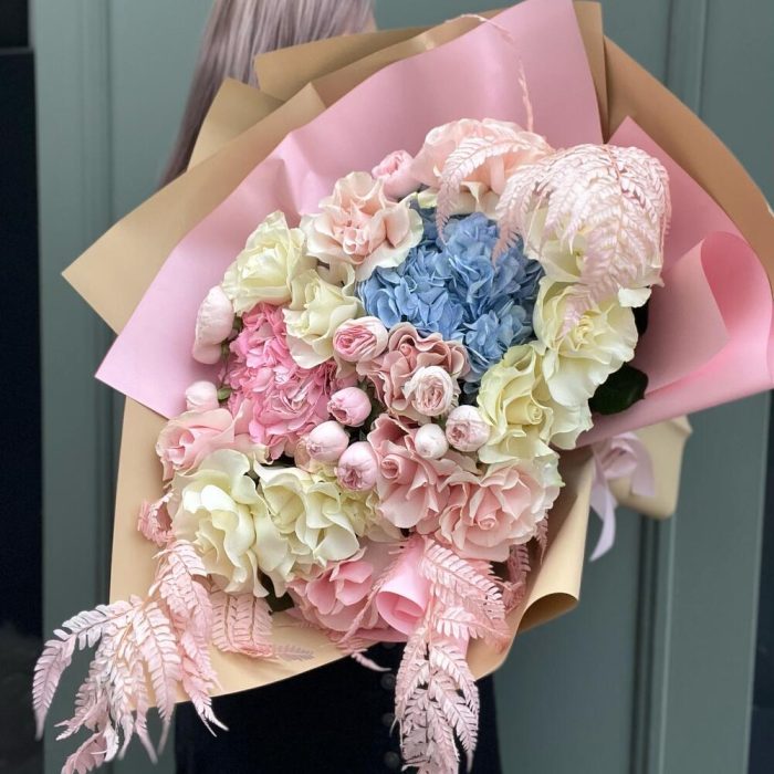 Альстромерии, Кустовые розы, Лизиантусы, Пионовидные розы, Розы, Ромашки