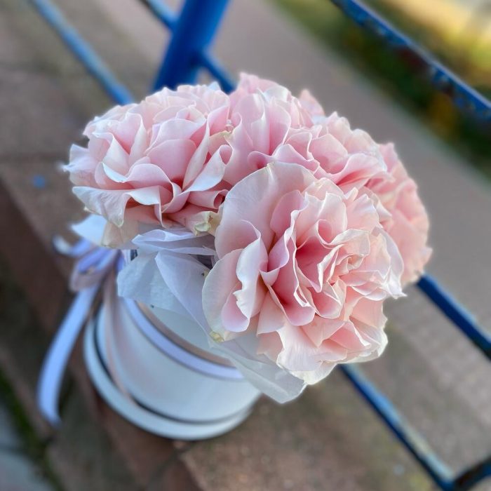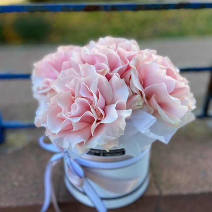 Французская роза – 5 шт. Коробка шляпная – 1 шт. Оазис флористический – 1 шт.