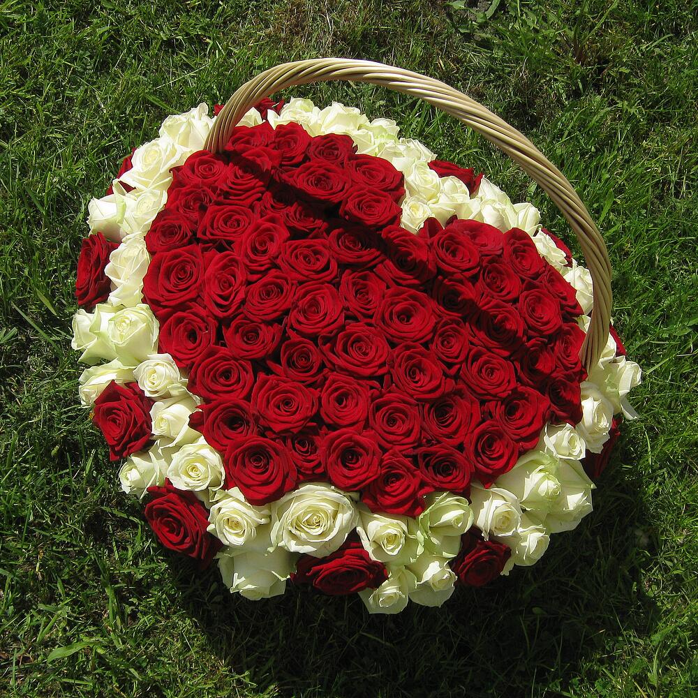 Корзина из 101 розы "Сердце"