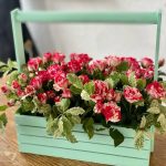 “Атлас☁️” – цветочная композиция с зефиром в деревянном ящике