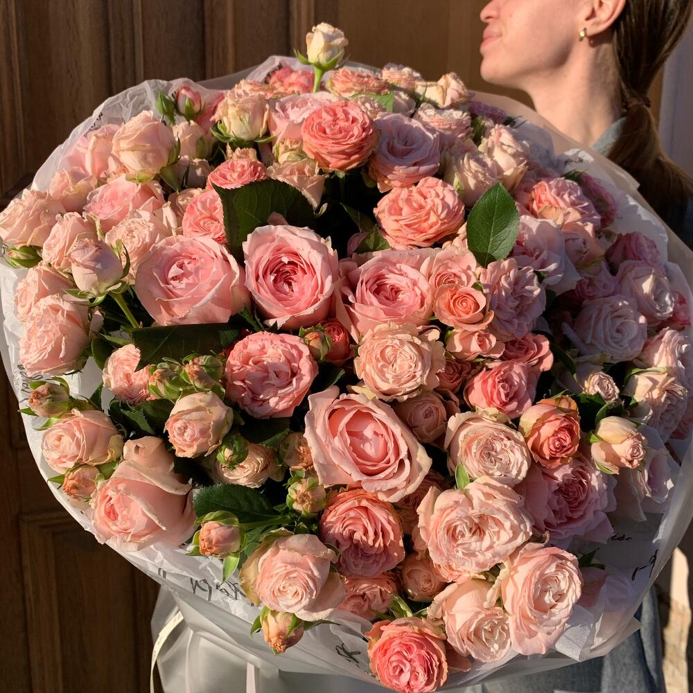 пионовидные розы – 27 шт.Дизайнерская упаковка – 2 шт.