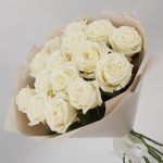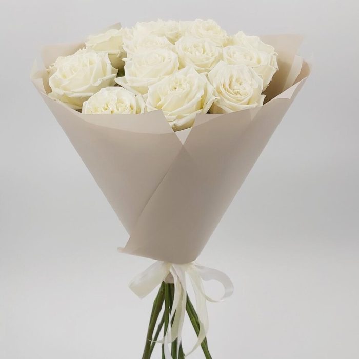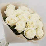 Милый букет из нежнейших белых роз в стильной упаковке. Такой букет всегда уместен и подойдёт для любого повода: День Рождения, именины, годовщина свадьбы, рождение ребенка, 8 марта, День Святого Валентина, выпускной и т.д. Можно вручить маме, сестре, подруге, коллеге, любимой.