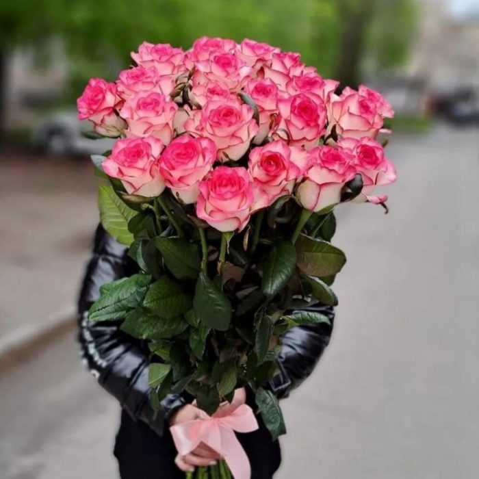 Метки: 25 роз, На свадьбу, от 4000 до 5000 руб, Роза 60 см, Розовые розы
