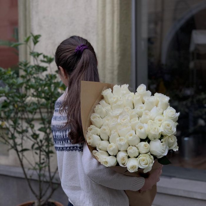 Метки: 51 роза, Белые розы, от 5000 руб, Роза 60 см